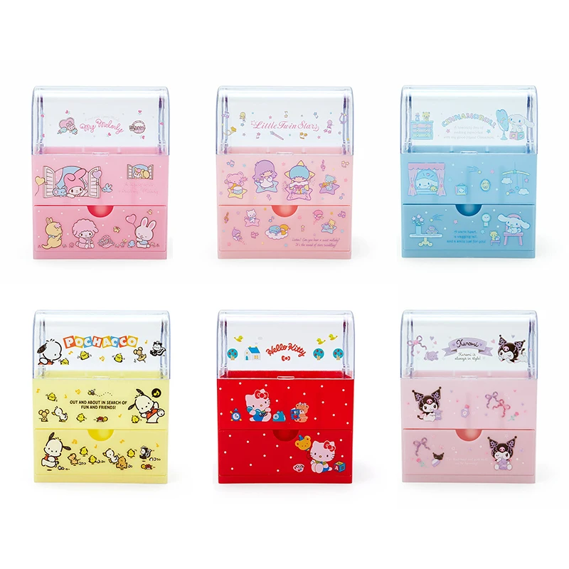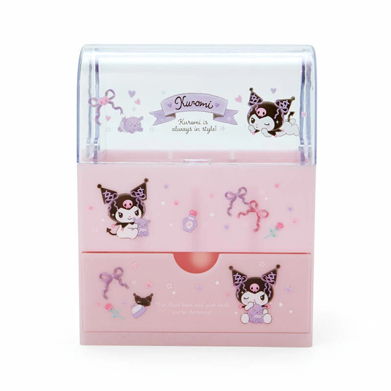 Display your makeup brushes and other cute cosmetics in this Sanrio Cosmetics Case! This case has a drawer on the bottom and a compartment on top with an adjustable divider for organizing your things. The top has a clear lifting lid to help keep the dust off of your brushes.